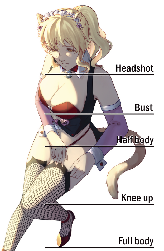 A Half body commission shows the character from head to hip.♦️ KNEE UP